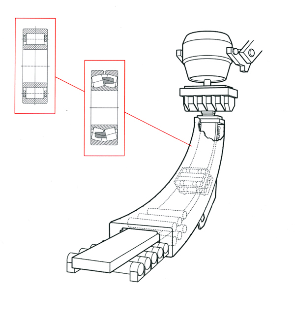 在冶金行業(yè),產(chǎn)品主要應(yīng)用于連鑄機(jī)、熱軋前后及加熱爐的運(yùn)送輥道等。針對連鑄機(jī)在高溫、重載、重污染的工況條件下連續(xù)工作的應(yīng)用特點(diǎn),開發(fā)了專用于連鑄機(jī)的系列產(chǎn)品,主要應(yīng)用于結(jié)晶器振動裝置、扇形段及冷卻段板坯輸送輥道,并已在國內(nèi)外多家鋼廠的新生產(chǎn)線上成功運(yùn)行。也是鋼鐵生產(chǎn)企業(yè)的日常維修軸承的重要供應(yīng)商,產(chǎn)品廣泛應(yīng)用于齒輪箱、風(fēng)機(jī)及輸送輥道等。