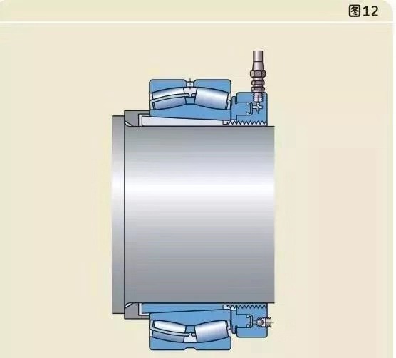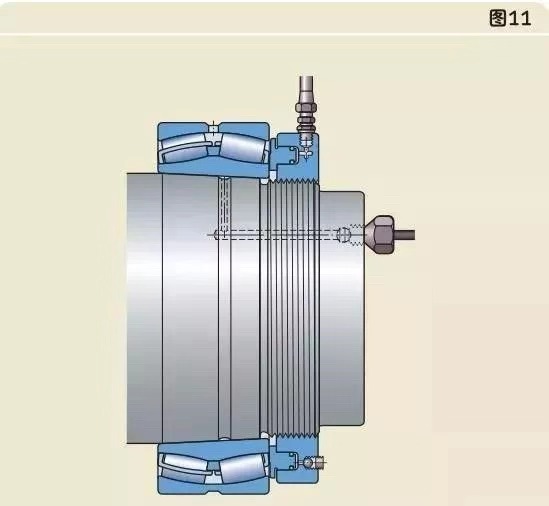 液壓螺母可以把圓錐孔軸承安裝在圓錐形軸徑上(圖11),緊定套上(圖12),退卸套上(圖13)。