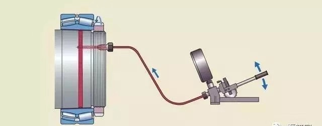 注油法的工作原理是:液壓油在高壓下通過(guò)油孔和油槽,注入軸承和軸徑之間的配合面,形成一層油膜。油膜將配合面分開,使得配合面之間的摩擦大幅減少。這種方法通常用于直接把軸承安裝在圓錐形軸徑上的情況。必須的油孔和油槽應(yīng)是整體軸設(shè)計(jì)的一部分。如果緊定套和退卸套,已加工有油孔油槽,這種方法也可用于將軸承安裝在緊定套或退卸套上。