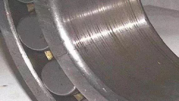 由于“走內(nèi)圈”使內(nèi)孔與軸表面之間產(chǎn)生滑動(dòng)摩擦,引起的高溫使表面金屬熔化并產(chǎn)生粘連。